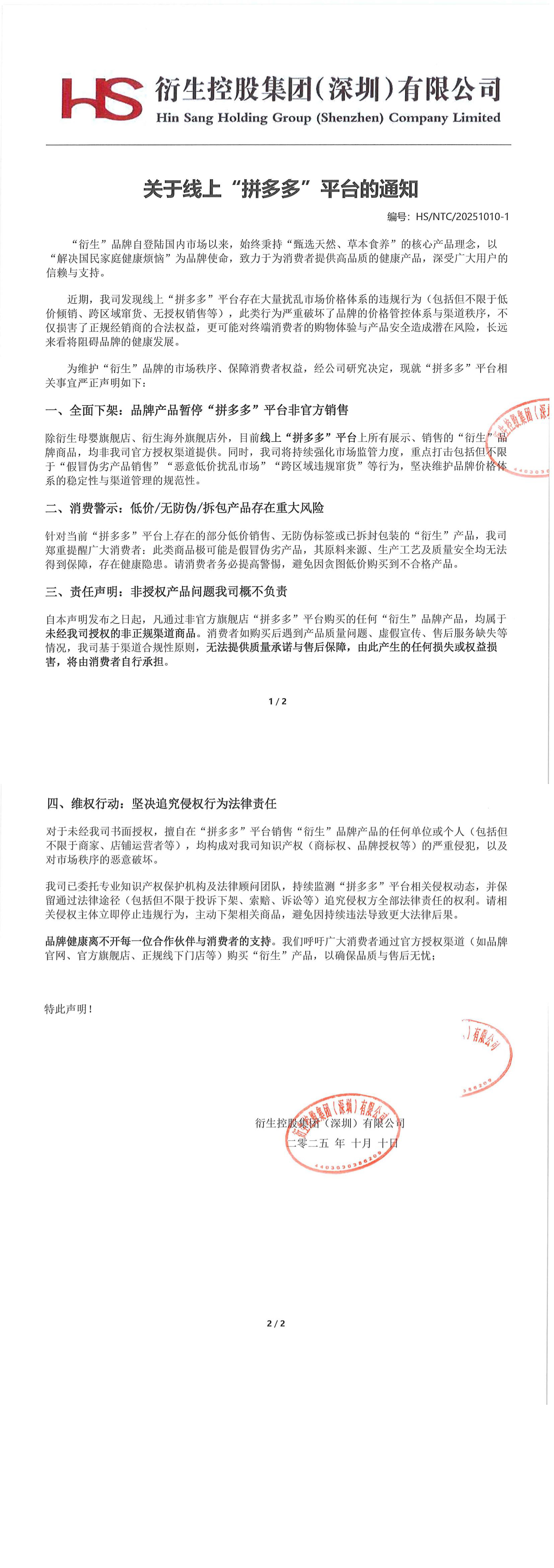衍生集团关于线上非官方授权销售渠道的严正声明